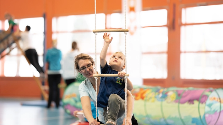 Im Erwachsenen-Kind-Turnen fördert dein Kind spielerisch seine motorischen Fähigkeiten und lernt wichtige soziale Kompetenzen. Seit über 50 Jahren begeistert Muki-Turnen, wie es früher hiess, Kinder in der ganzen Schweiz und zaubert leuchtende Kinderaugen in die Turnhalle. Aufgrund gesellschaftlicher Weiterentwicklung hat man auf das Jahr 2025 hin die Bezeichnung auf Erwachsenen-Kind-Turnen geändert. So ist sichergestellt, dass alle Bezugspersonen, unabhängig von Geschlecht, Herkunft oder anderen Merkmalen, einbezogen und angesprochen werden.
